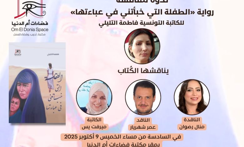 ينظم صالون مكتبة فضاءات أم الدنيا، بوسط القاهرة، في السادسة من مساء الخميس 9 أكتوبر الجاري، ندوة لمناقشة رواية “الطفلة التي خبأتني في عباءتها”.