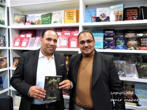 وقام الكاتب إبراهيم شعبان بالتوقيع على نسخ من الرواية للحضور الكريم، بإهداء منه.