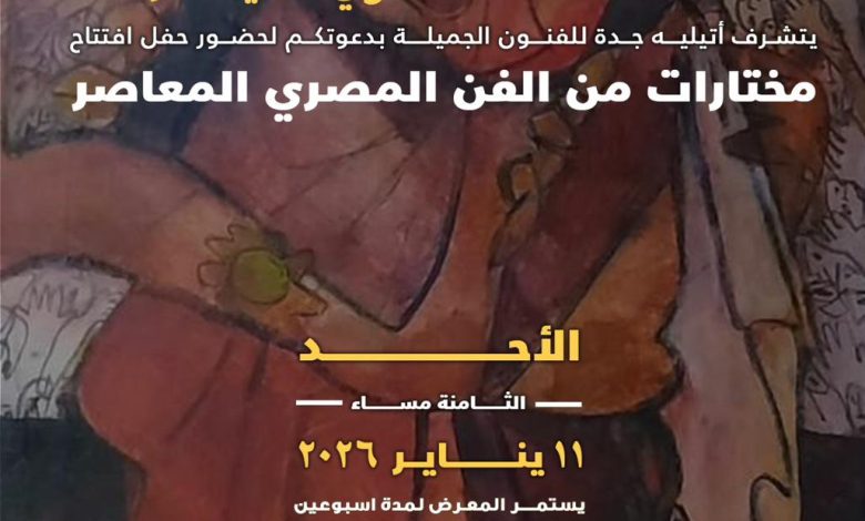 يطلق أتيليه جدة للفنون التشكيلية، يوم الأحد المقبل 11 يناير 2026، برعاية المهندس لؤي حكيم، معرض “مختارات من الفن المعاصر”، لنخبة من رموز الحركة التشكيلية المصرية من مختلف الأجيال.