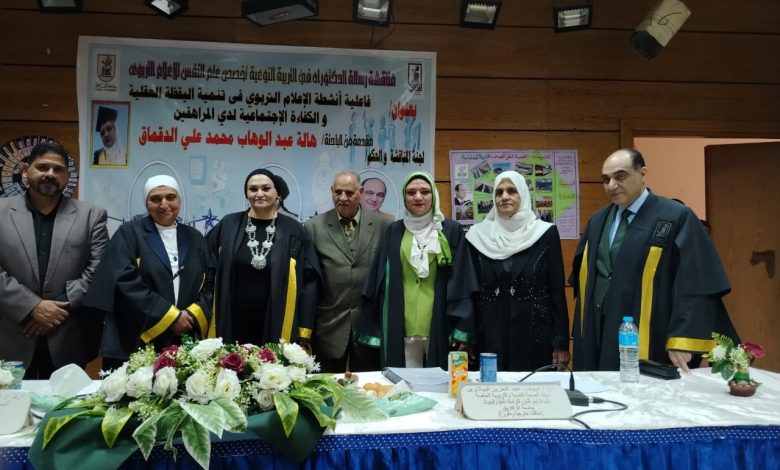 حصلت الباحثة هالة عبد الوهاب الدقماق على درجة الدكتوراة عن البحث المقدم بعنوان (فاعلية أنشطة الإعلام التربوي في تنمية اليقظة العقلية والكفاءة الاجتماعية لدى المراهقين) حيث تمت المناقشة في كلية التربية النوعية بجامعة القاهرة