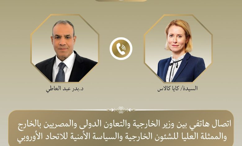 جرى اتصال هاتفي بين د. بدر عبد العاطي وزير الخارجية والتعاون الدولى والمصريين بالخارج والسيدة “كايا كالاس” الممثلة العليا للشئون الخارجية والسياسة الأمنية للاتحاد الأوروبي يوم الخميس ٥ مارس، حيث تناول الاتصال العلاقات المصرية – الأوروبية وكذلك التطورات الإقليمية المتسارعة.