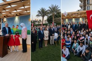 أطفال تركيا ومصر وفلسطين يطلقون رسالة سلام في عيد السيادة الوطنية والطفولة بالسفارة التركية