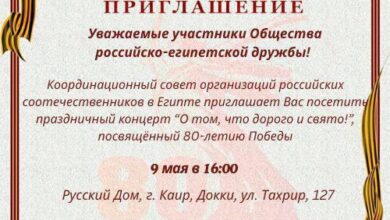وجه المجلس التنسيقي للجالية الروسية ممثلا في السيدة أولجا بيسكلينا رئيس الجالية الدعوة إلى أعضاء جمعية الصداقة المصرية الروسية وبعض…